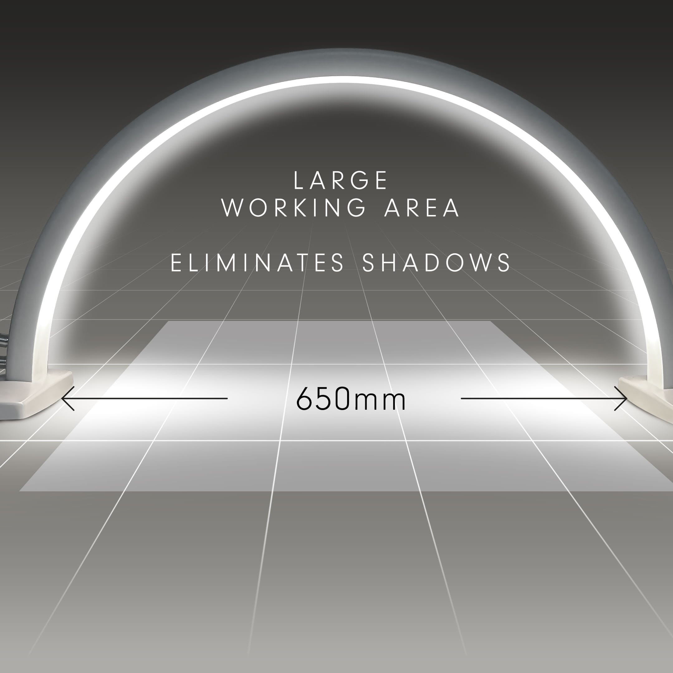 De Halo Crescent LED-lamp is ontworpen om uw gehele werkgebied te verlichten zonder schaduwen te veroorzaken.